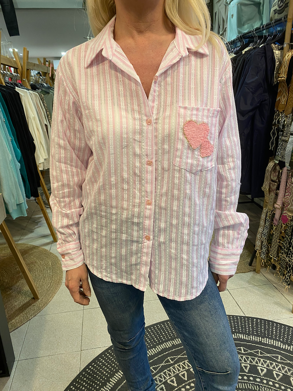 Chemise à rayures avec coeurs