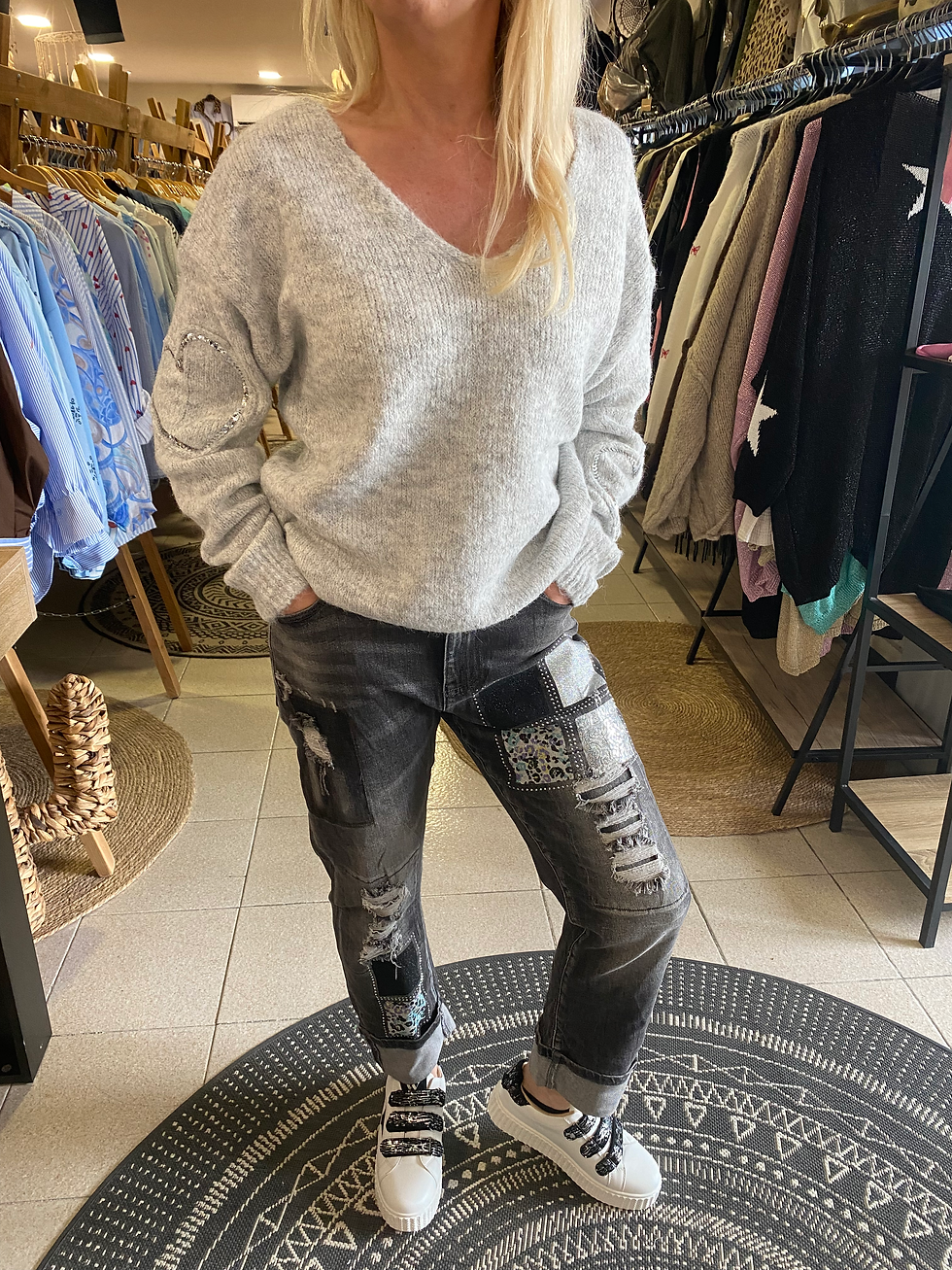 Jean gris foncé avec empiècements